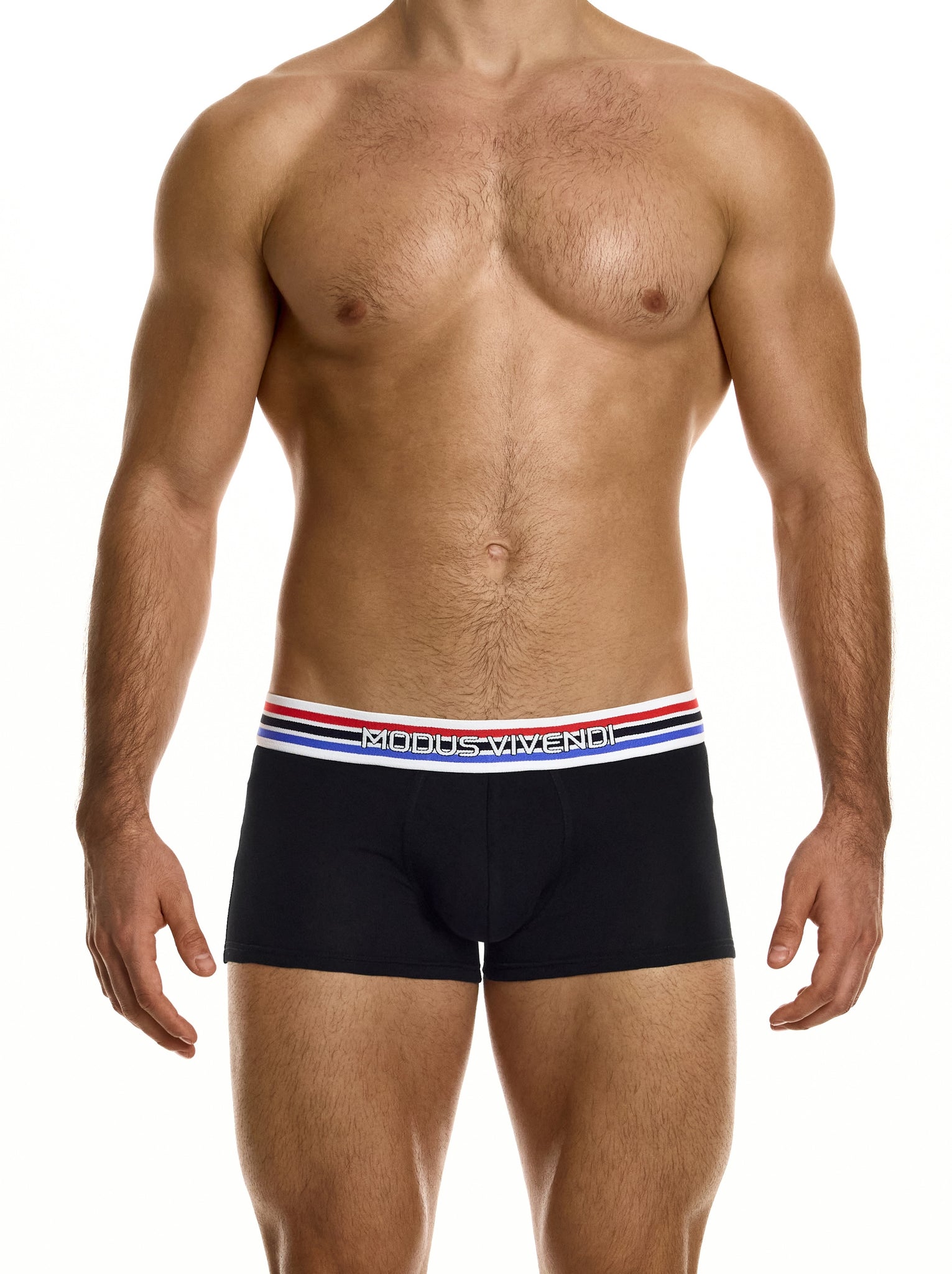 The Modus Vivendi Black Heritage Boxer is a low rise modern cut that combines traditional athletic support with modern design. Featuring a supportive contoured pouch and comfortable elastic waistband with signature Modus Vivendi branding, this boxer delivers both style and performance with minimal coverage.